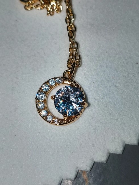 #collier #pendentif #ronde #or #plaquéor #neuf #lune #croissantdelune #dore #fermoirsecurise #sakurascreation #zirconium #madeinfrance #brillance #strass #ronde #zirconiumtaillé #zirconiums #orjaune #diamants #diamant #moissanite