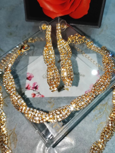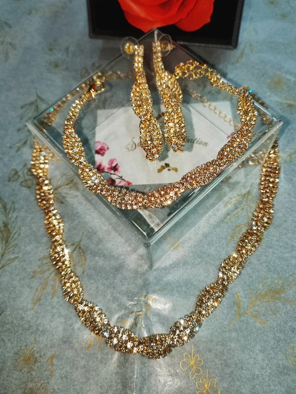 #sakurascreation #parure #plaquéor #plaquage #dore #diamant #dore #or #collier #bouclesdoreilles #bracelet #doré #élégant #étincelant #lignes