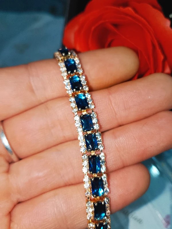 #sakurascreation #saphir #or #plaqueor #doré #dore #bleu #saphirsynthétique #bracelet #fermoirtennis #zirconium #zirconiums #diamants #carré #carre