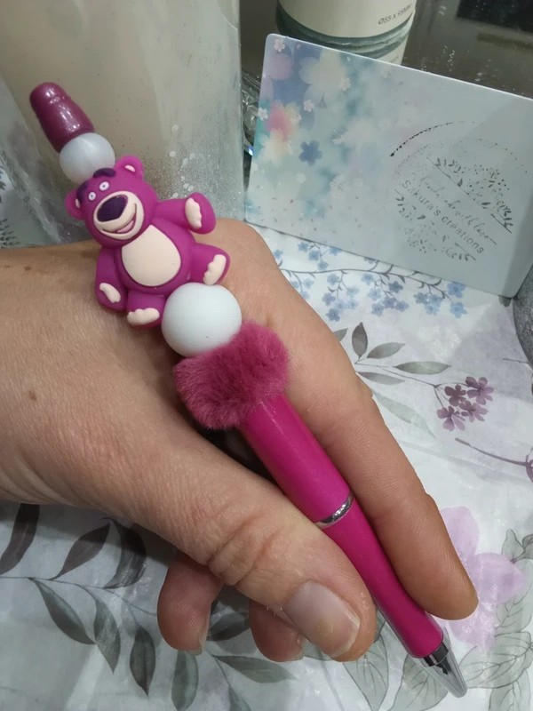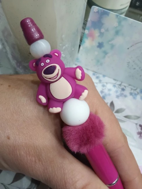 #stylobille #noel #sakurascreation #faitmain #madeinfrance #silicone #acrylique #lotso #fushia #rose #dessin #ours #cadeau #fourrure #disney #toystory