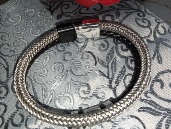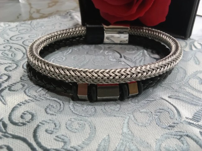 Perle en acier inoxydable sur le tressage du bracelet noir