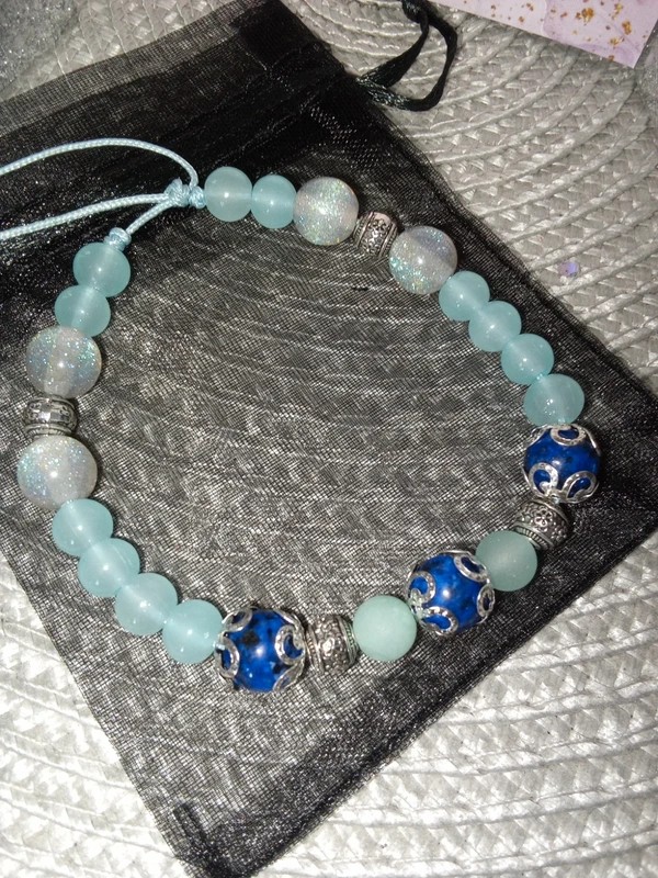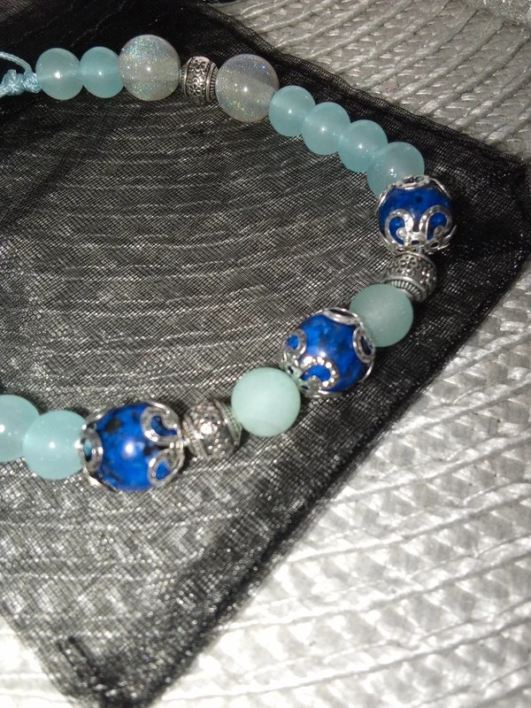 #bracelet #faitmain #ajustable #cordontressé #lapislazuli #agate #perlesdeverre #perledeverre #résine #acierinoxydable #sakurascreation #madeinfrance #menthe #bleu #turquoise