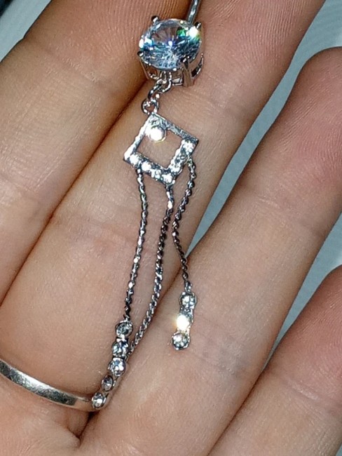 Représente un zirconium principale avec descente sur un losange avec zirconium puis sur 3 chainettes finissant par 3 zirconiums ronds