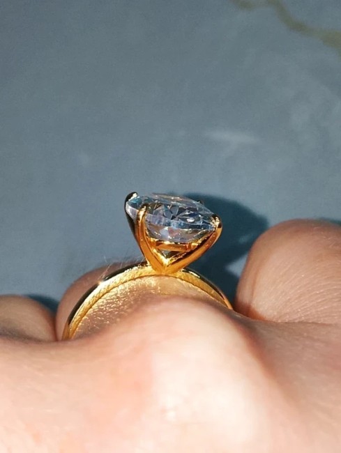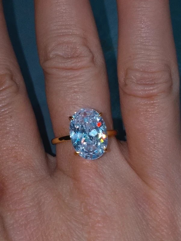 Moissanite centrale taillé en ovale de 14 par 10cm et d'épaisseur 9mm soit 8 carats