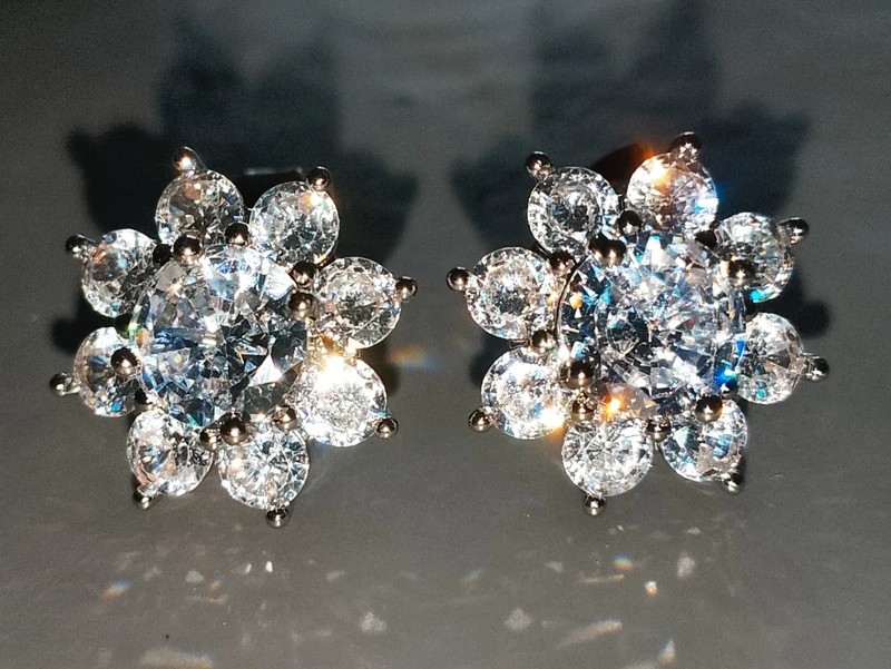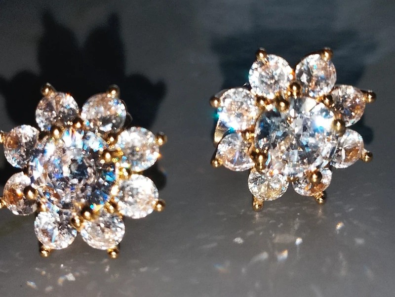 #moissanite #pucedoreille #bouclesdoreille #sakurascreation #or #plaquéor #doré #carats #fleur #zirconium #poinçonné #poinçon #luxe #diamants #diamant #bijouxdeluxe #blanc #étoile #dore