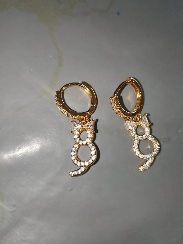 #boucledoreille #boucledoreilles #anneaux #or #plaquéor #neuf #doré #or #fermoirsecurise #sakurascreation #zirconium #madeinfrance #brillance #strass #chat #zirconiums