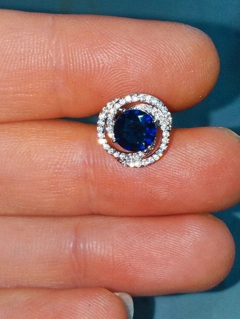 Saphir synthétique rond de 0.6 cm tenu par 4 griffes de 0.5 carats par boucle