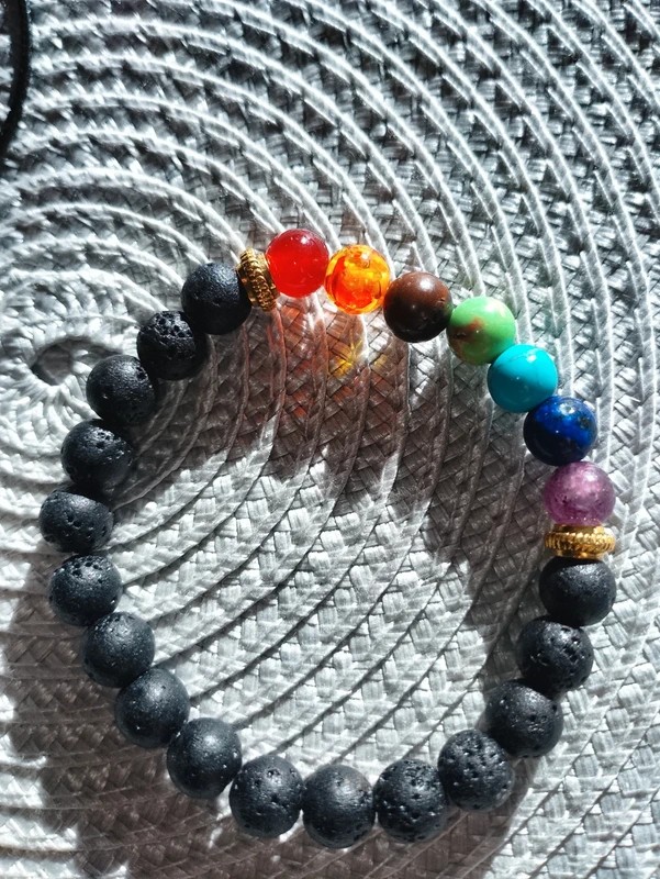 Bracelet de 18cm élastique avec pierre de lave, oeil de tigre , jaspe , améthyste etc