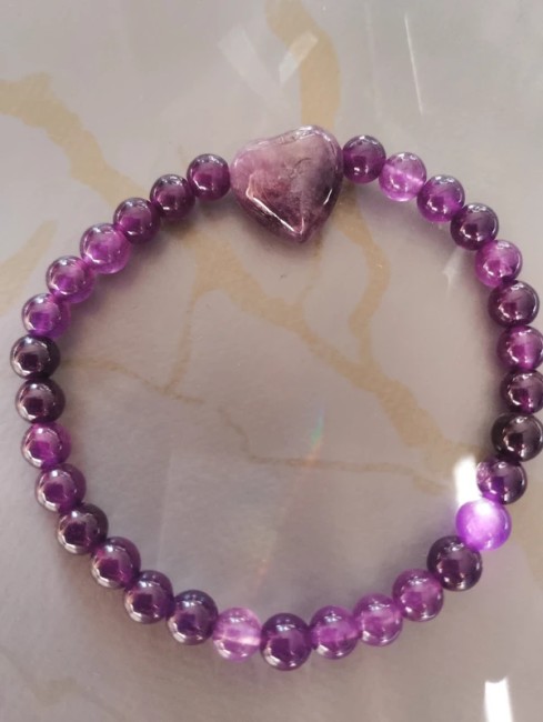 -Perles de pierre d'améthyste véritable avec coeur centrale