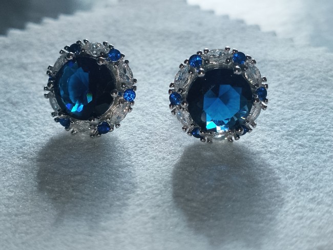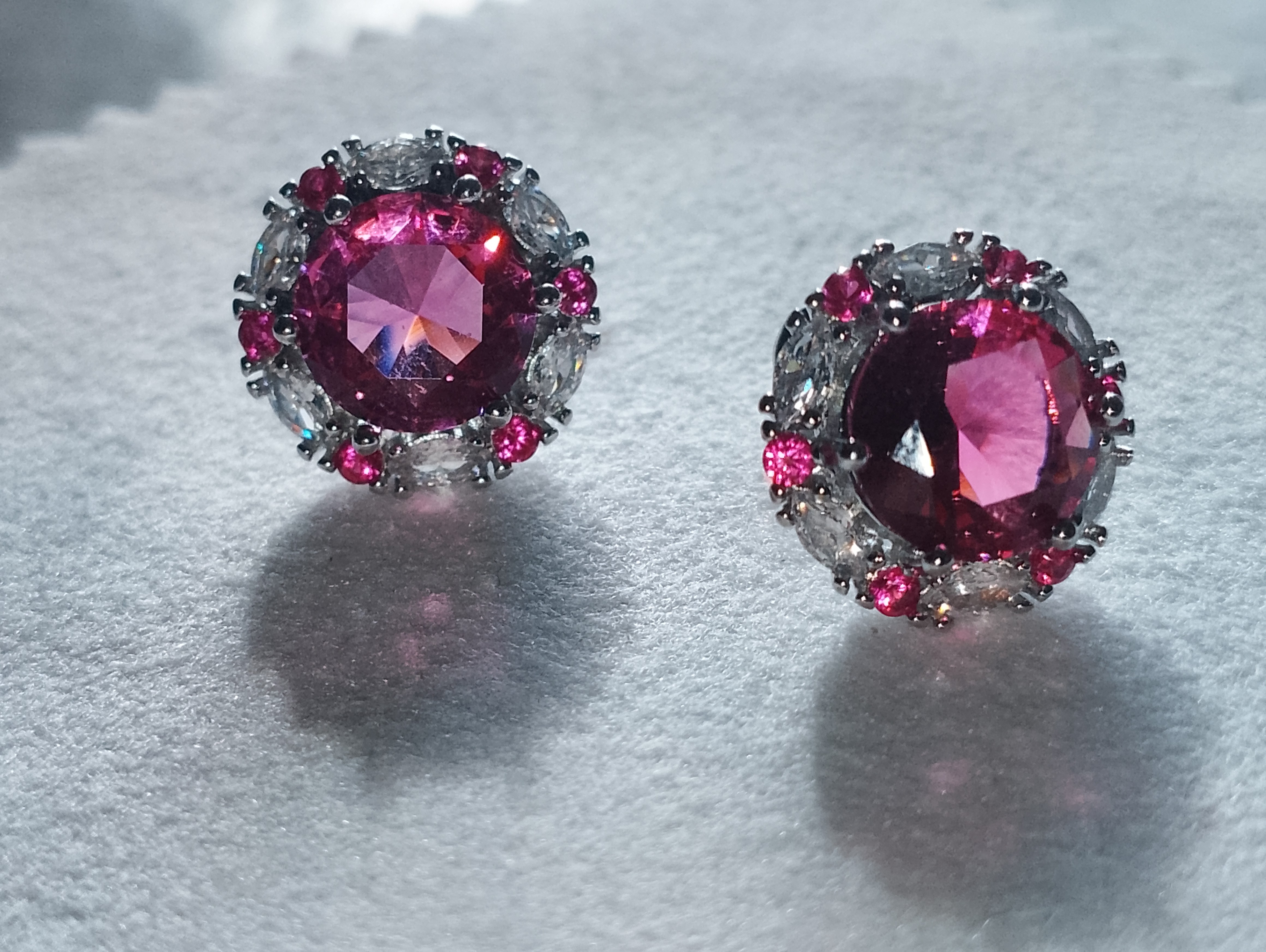 Entouré d'un autre rond avec 6 petits zirconiums coloris de la pierre choisie et autres zirconiums blanc