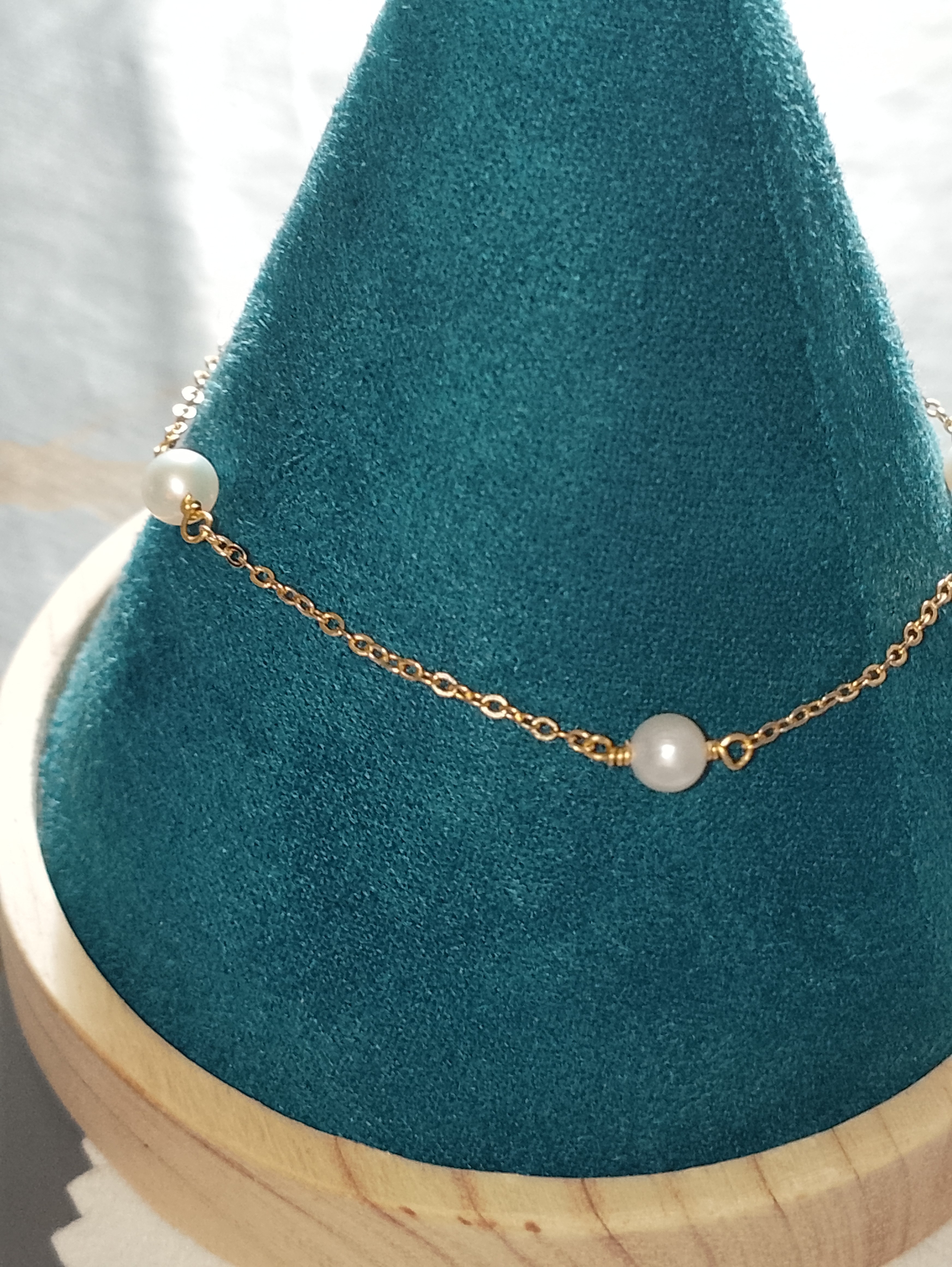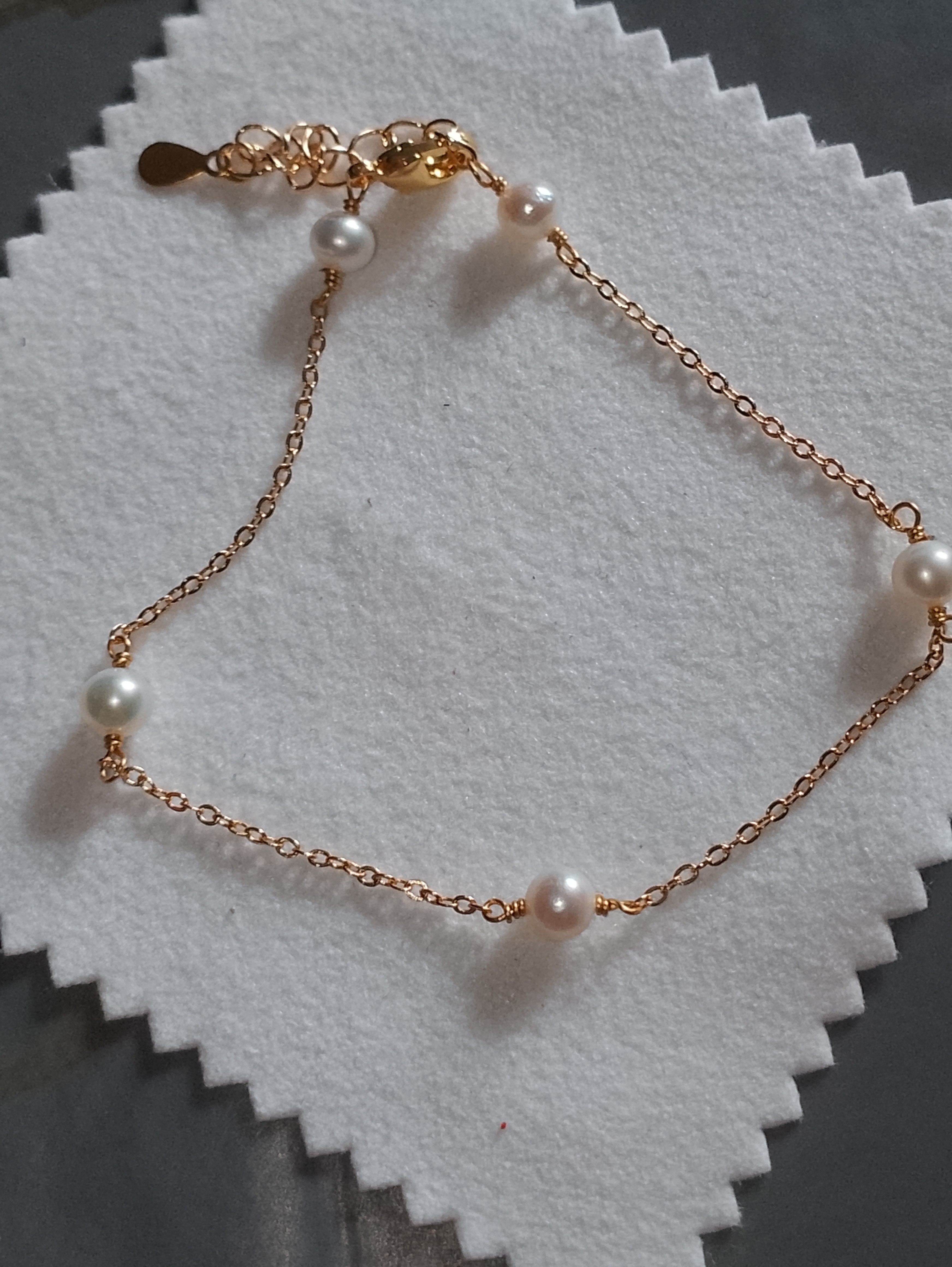 Orné de 5 superbes perles d'eau douce ( perles de culture ) véritables blanches