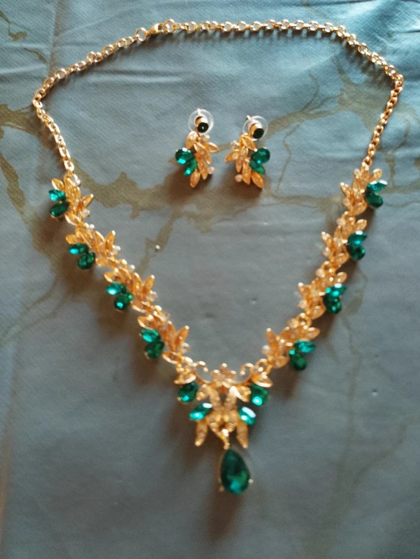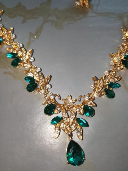 Représente des ronds , gouttes d'eau de zirconiums blancs et vert émeraude OU bleu saphir