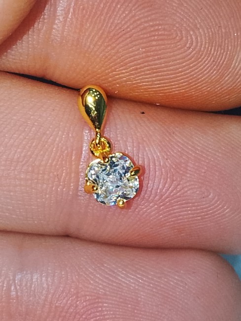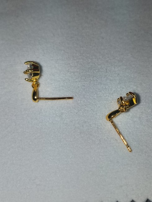 Une moissanite pendante blanche carré de 0.7cm de diamètre par boucle d'oreille ( la moissanite est une pierre utilisée en joaillerie, mais l'extrême rareté des cristaux naturels — et leur pureté souvent très imparfaite — font qu'il s'agit toujours de moissanite synthétique, dont l'apparence et les propriétés sont très semblables à celles du diamant. Si la conductivité thermique très voisine des deux cristaux est susceptible de tromper une expertise fondée sur cette seule propriété) retenue par 4 griffes soit 2 carats par boucle